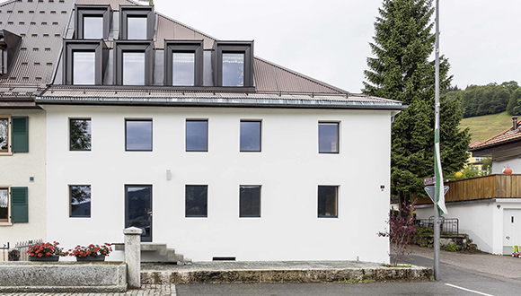 En 2013, j’ai assuré le mandat de conception et de rénovation d’un immeuble Sur les Quais 7, au Pont. Ce projet a impliqué l’aménagement de quatre appartements au sein d’un volume